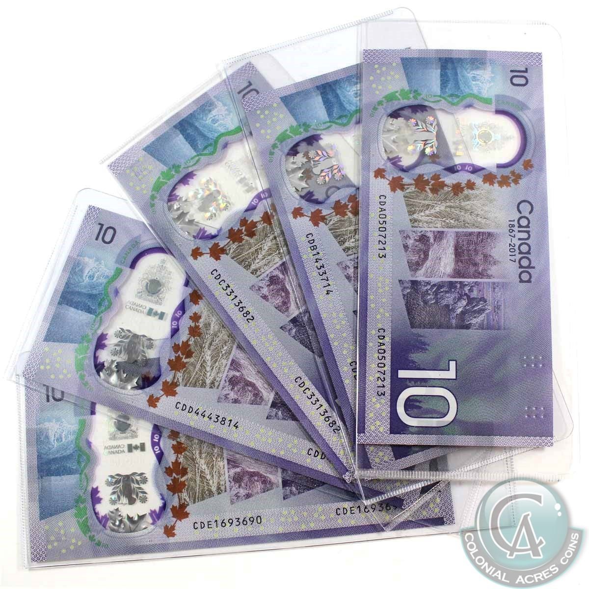 Estate Lot of 5x 2017 Canada $10 Uncirculated Commemorative Notes with Prefix CDA, CDB, CDC, CDD & CDE. 5pcs