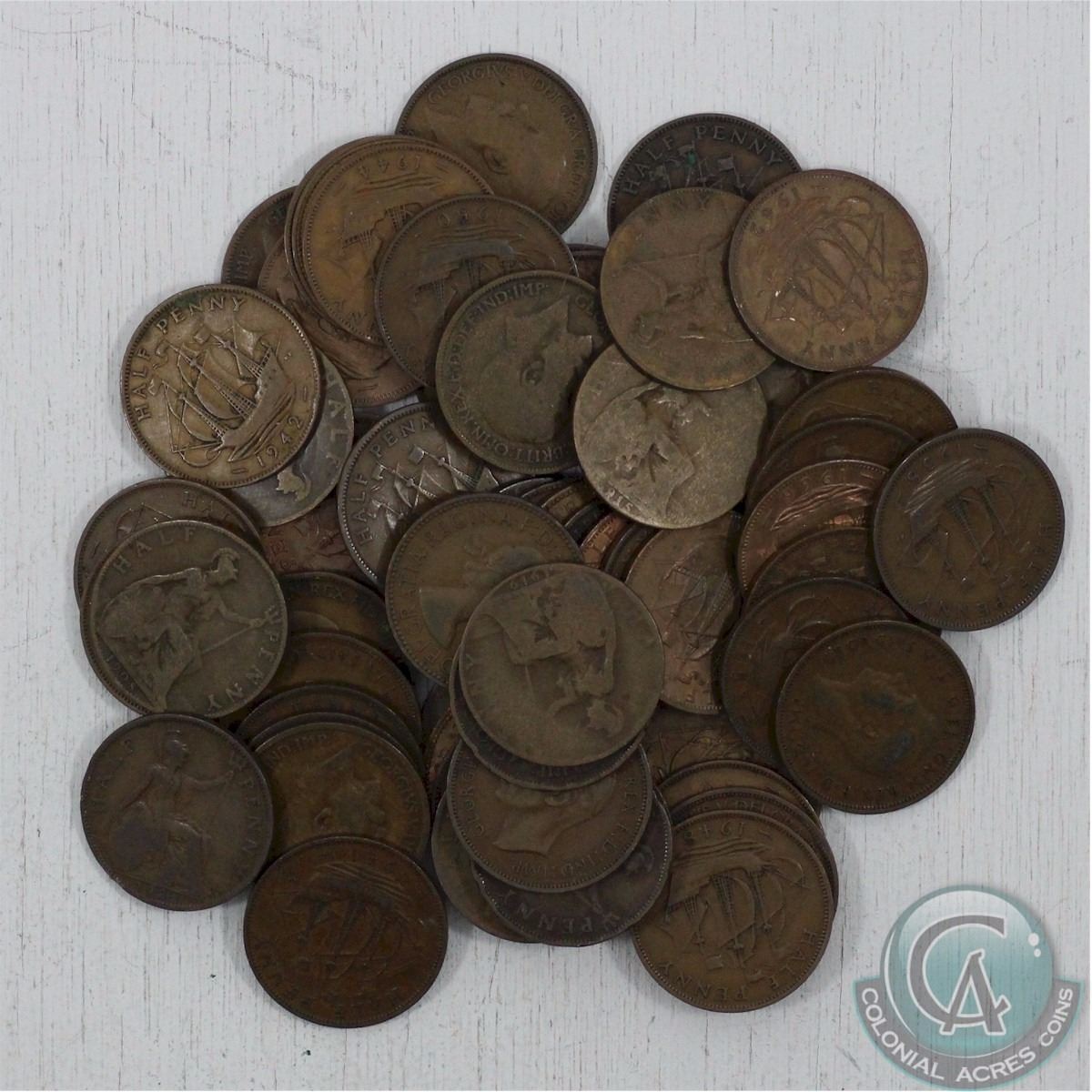 Estate Lot of 64x Assorted Great Britain Half Pennies ranging from 1908-1967. (64pcs)