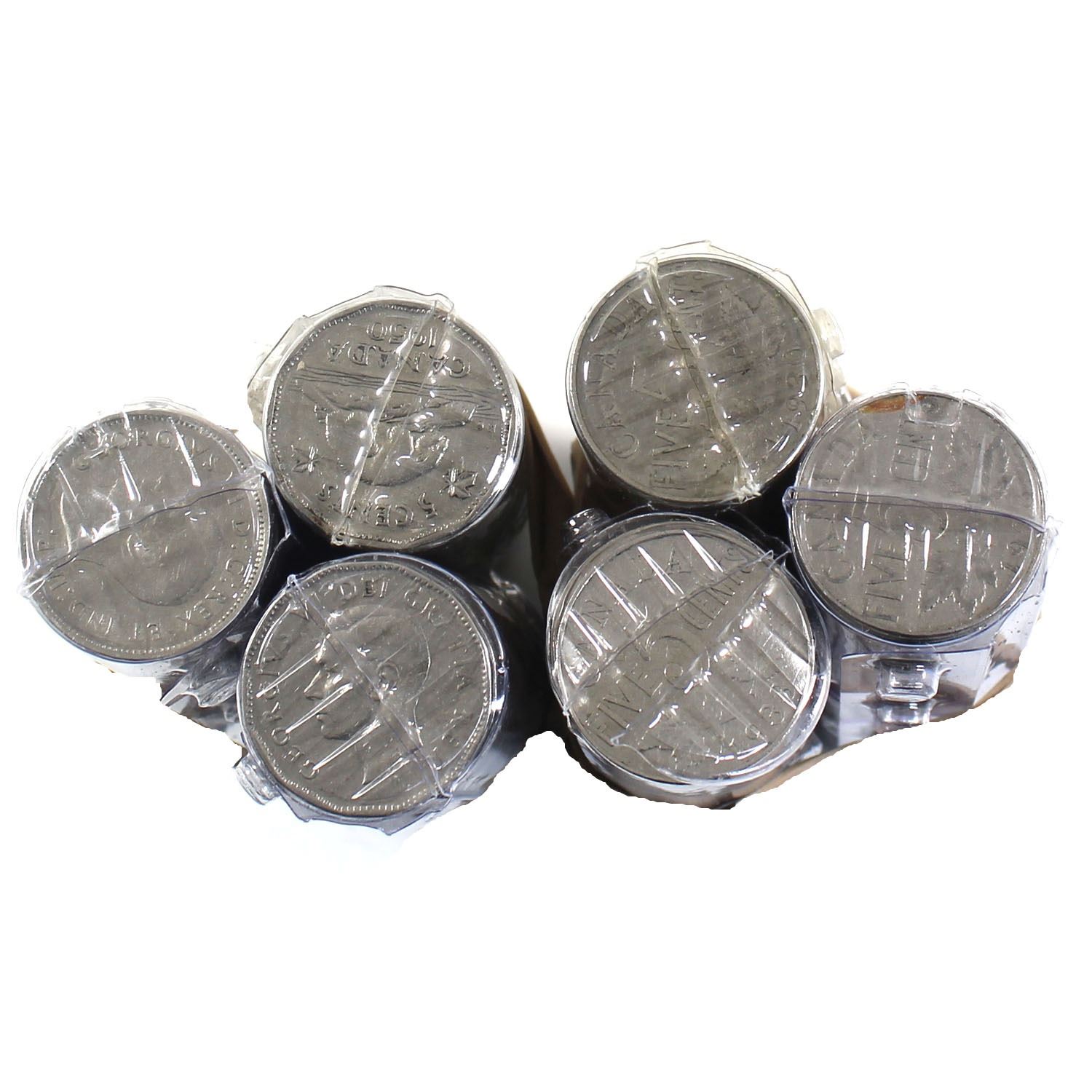 Estate Lot of 6x 1922-1953 Canada 5-cents mixed date Rolls. You will find 2.5 Roll covering the date range 1922-1936 (missing 1925 & 1926) and 3.5 Roll Covering 1938-1953. 6pcs