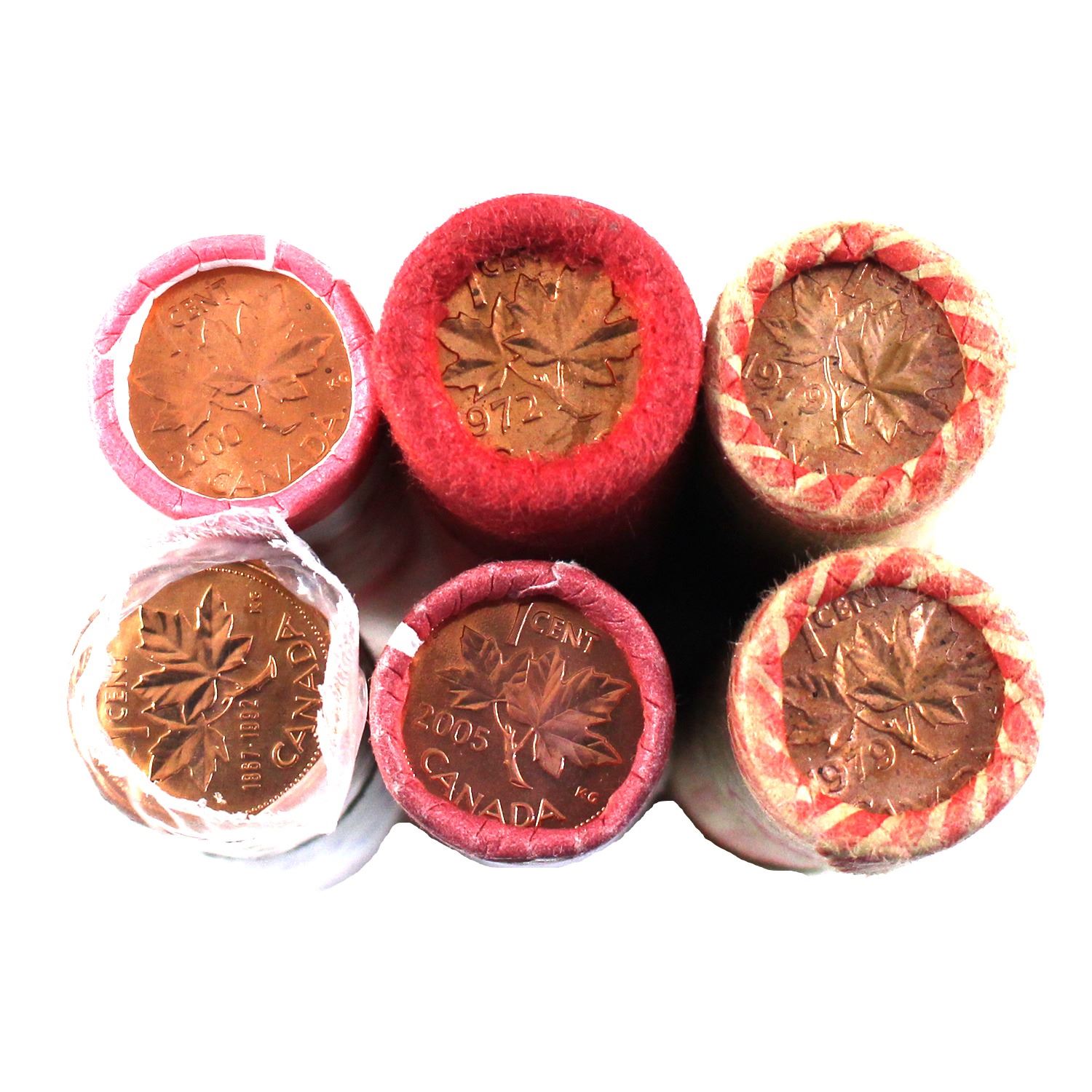 Estate Lot of 6x Canada 1-cent Original Rolls - 1972, 2x 1979, 1992, 2000 & 2005. 6 rolls