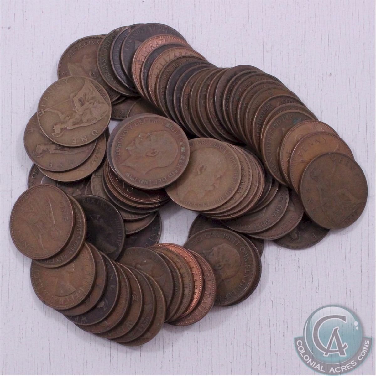 Estate Lot of 74x Assorted Great Britain Pennies ranging from 1865-1967. (74 pcs)
