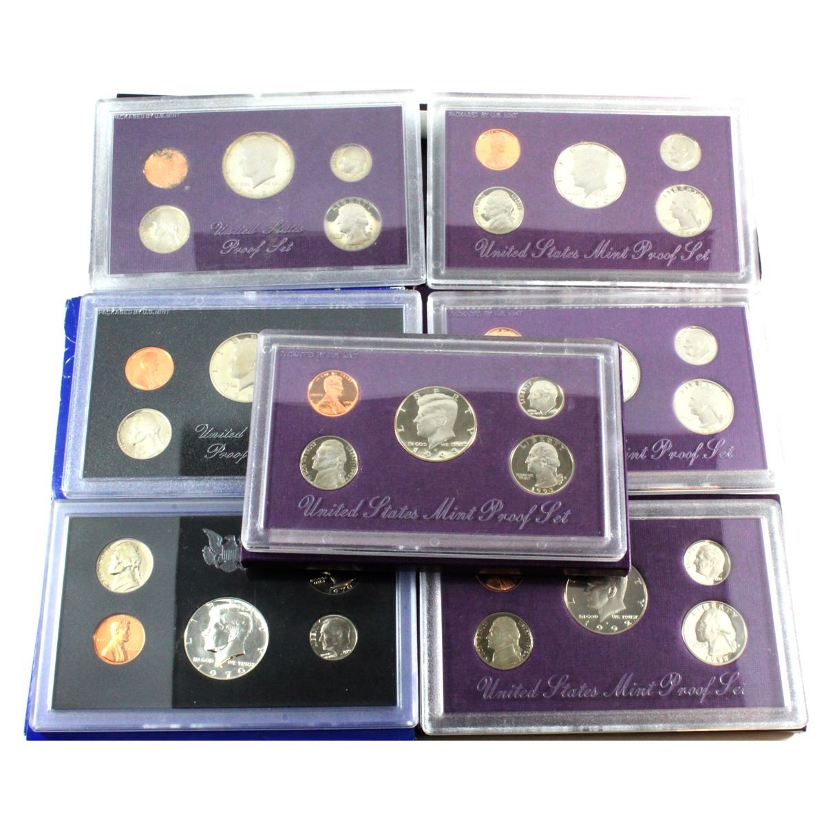 Estate Lot of 7x United States Proof Sets 1970-1993. You will receive the following dates:1970, 1983, 1984, 1990, 1991, 1992 and 1993. Please Note some of these coins maybe lightly toned and boxes may be lightly tattered. (7pcs). Buyers Premium will be added on all items as per our terms of sale. We accept Paypal, Credit Card, E-Transfer Payments, Cheque or Money Orders (there is an additional 3% fee for using Paypal or Credit Card). All invoices will be emailed immediately following the auction, please contact us if you would like to pay by credit card or receive a new revised lower total for mailing in payment or sending an e-transfer (3% discount). All Items Are Sold "AS IS", no returns