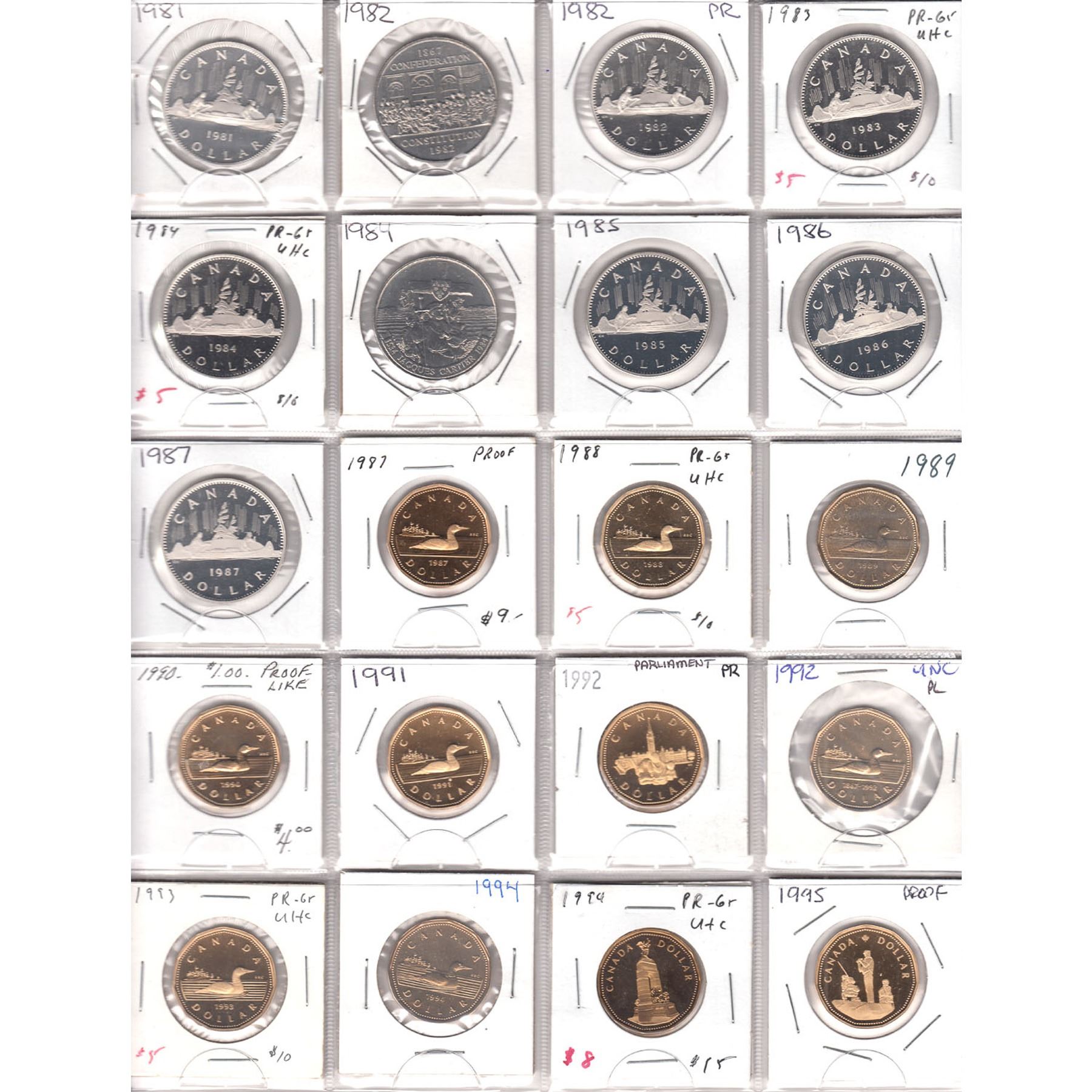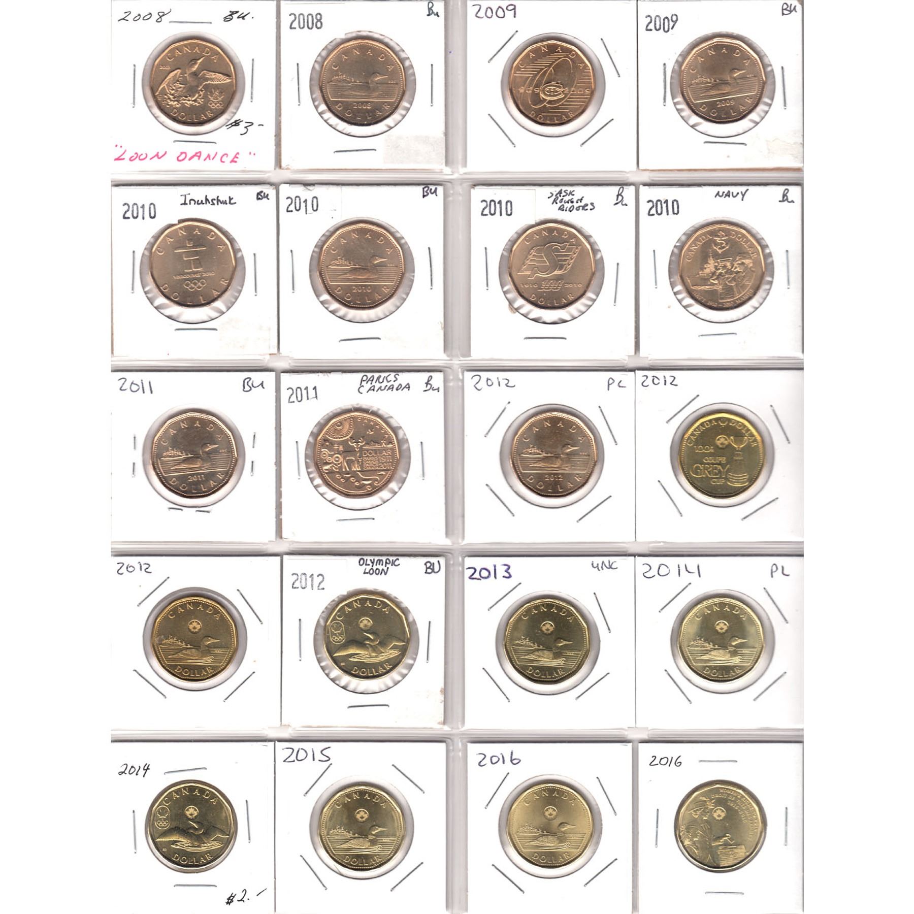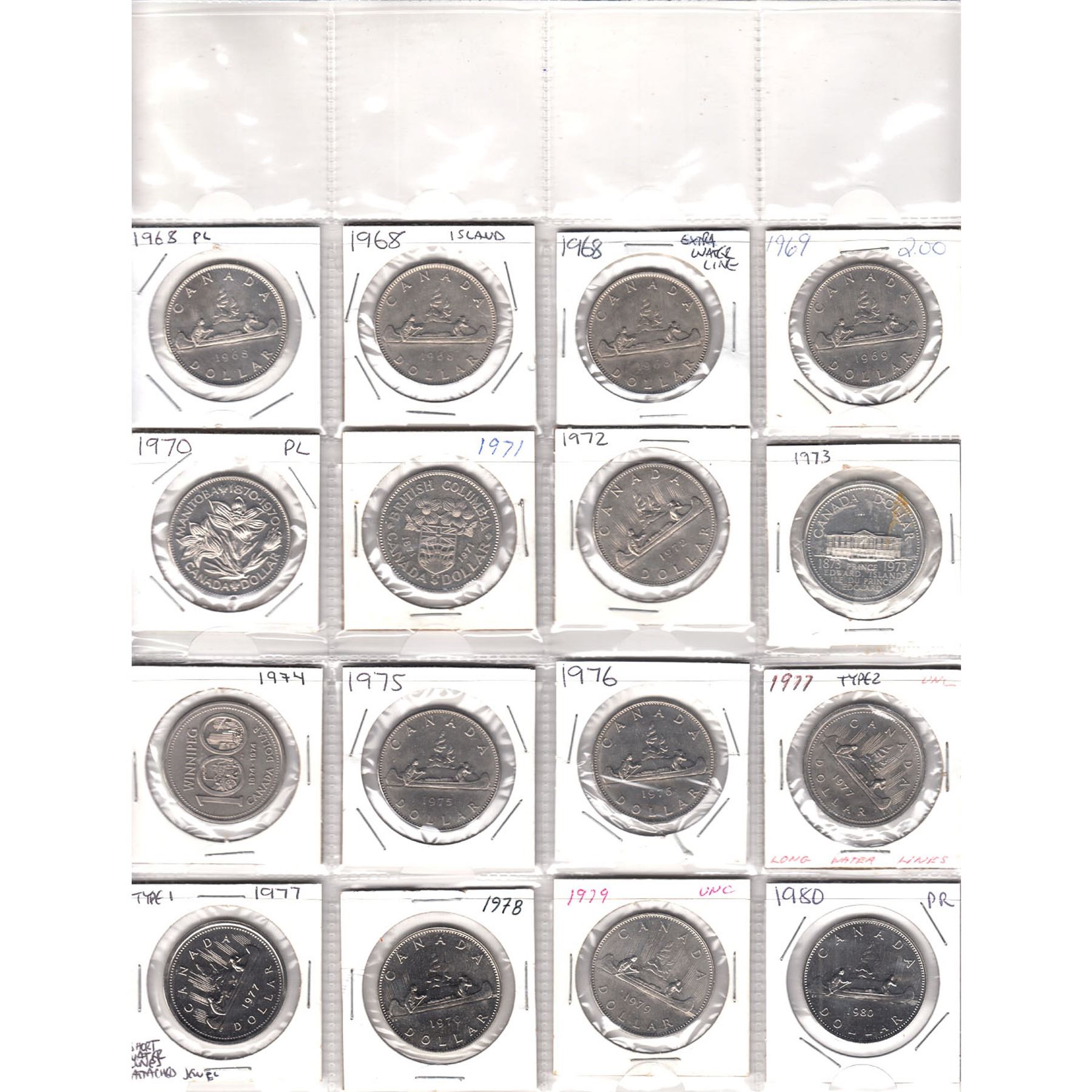 Estate Lot of 83x Canadian Dollars from 1968-2019. Lot includes: 1968 Sm Island, 1968, 1968 EWL, 1969, 1970, 1971, 1972, 1973, 1974, 1975, 1976, 1977 T1, 1977T2, 1978, 1979, 1980, 1981, 1982 Cons., 1982 Voyageur PR, 1983, 1984 PR, 1984 Cartier, 1985, 1986, 1987, 1987 Loon, 1988, 1989, 1990, 1991, 1992 Parl., 1992 loon, 1993, 1994 loon, 1994 Peace, 1995 Peace, 1995 loon, 1996, 1997 PL, 1998W, 1998-O, 1999, 2000-W, 2000-O, 2001, 2002, 2003 N.E, 2004, 2005 Terry Fox, 2005, 2006 Olympic, 2006, 2006M, 2007, 2008M, 2008 Flying x2, 2008 loon, 2009 Montreal CDNS, 2009, 2010 Olympic, 2010, 2010 Sask Rough Riders, 2010 Navy, 2011, 2011 Parks Canada, 2012 Old Gen, 2012 Grey Cup, 2012 New Gen, 2012 Olympic, 2013, 2014, 2014 Olympic, 2015, 2016, 2016 Women's Right to Vote, 2016 Lucky Loon, 2017, 2017 Connect, 2017 Toronto ML, 2018, 2019, & 2019 Equality.