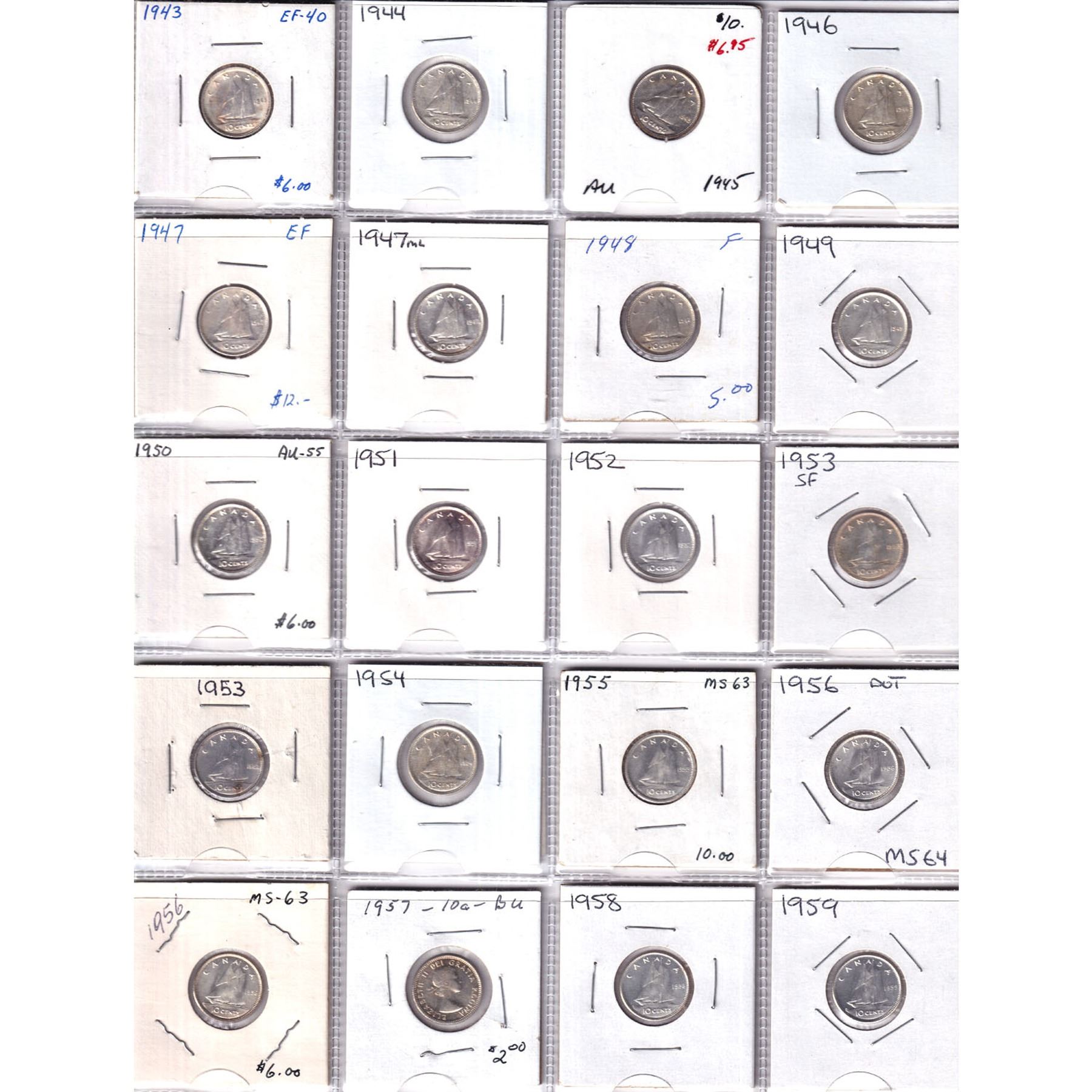 Estate Lot of 95x 10-cent from 1937-2019. Lot includes: 1937 AU, 1938 EF, 1939 AU (Scr.), 1940 VF, 1941 Circ, 1942 Circ, 1943 EF, 1944 EF, 1945 AU, 1946 EF, 1947 EF, 1947 ML AU, 1948 F, 1949 EF, 1950 AU-UNC, 1951 BU, 1952 BU, 1953 SF UNC, 1953 SF, 1954, 1955 BU, 1956 Dot BU, 1956 BU, 1957 BU, 1958 BU, 1959-1979 All UNC-BU, and 1980-2019 Most Proof or Proof Like!