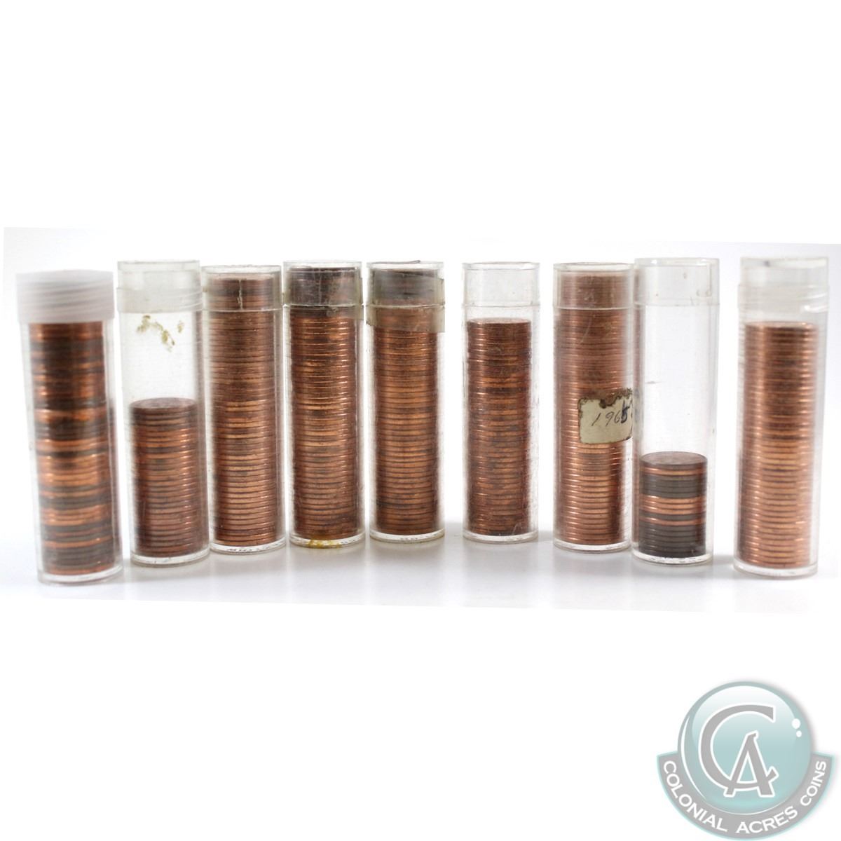Estate Lot of 9x Canada Full and Partially Full 1-cent Plastic Tube Rolls. You will receive 3x 1963 & 6x 1965 Variety 2 or 3. 9pcs