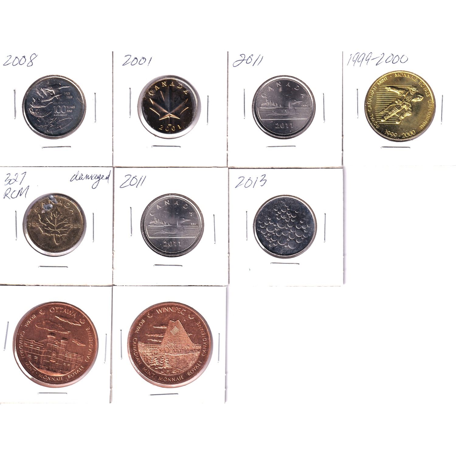 Estate Lot of 9x RCM Tokens. You will receive the 1999-200 Millennium, 2001,2008,2x 2011,2013, CRMD token Winnipeg, RCM Ottawa & token 327 (damaged). 9pcs