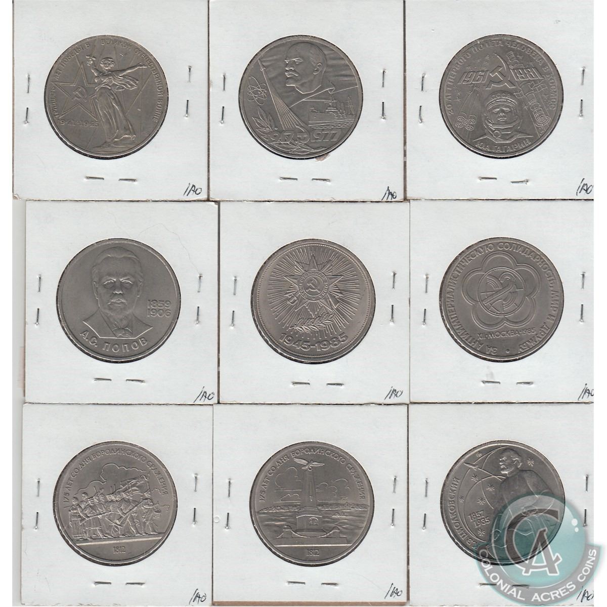 Estate Lot of 9x Russia 1 Rouble Coins. The dates You will receive are 1975, 1977, 1981, 1984, 2x198