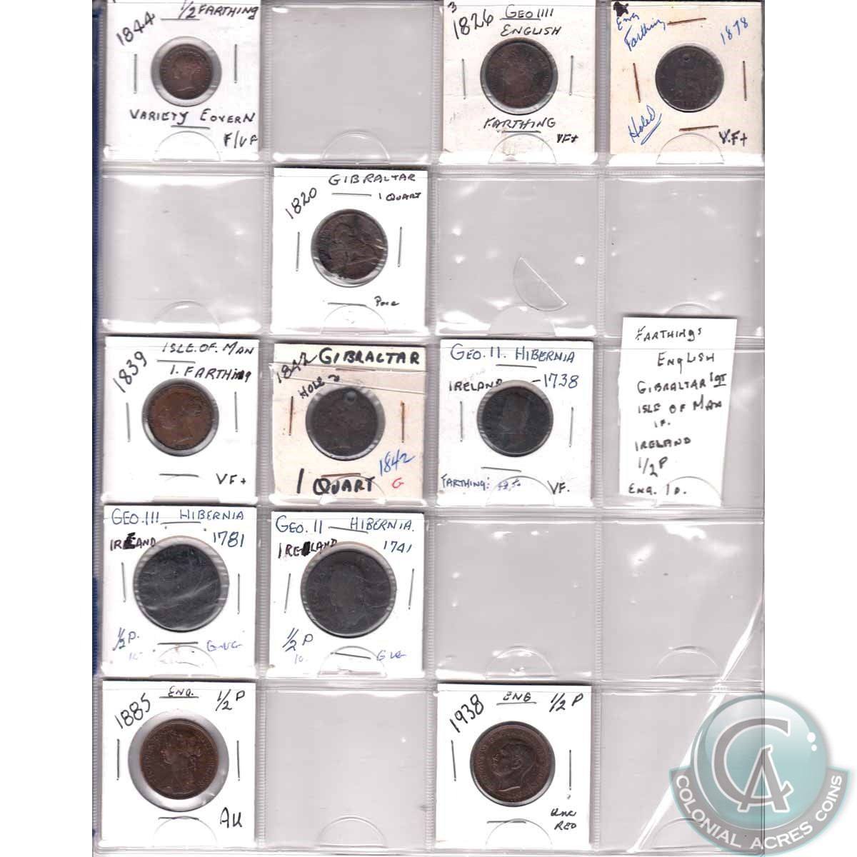 Estate Lot of Britain, Gibraltar, Ireland & Isle of Man Coins with Oldest Date Being 1738. 11pcs