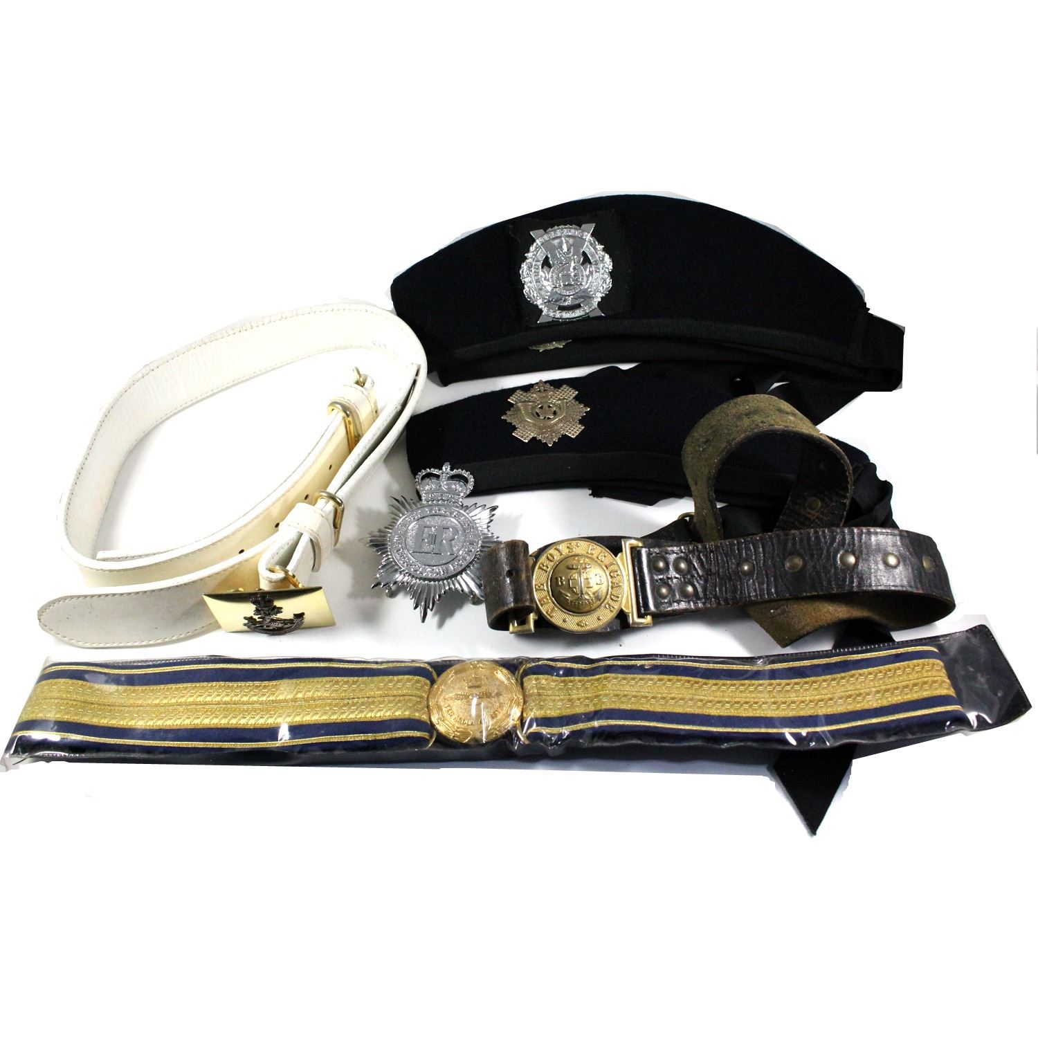 *Estate Lot of British and Canadian Military Belts and Hats. You will receive 3 belts, 3 hats and a West Yorkshire Metropolitan Police Badge. 7pcs