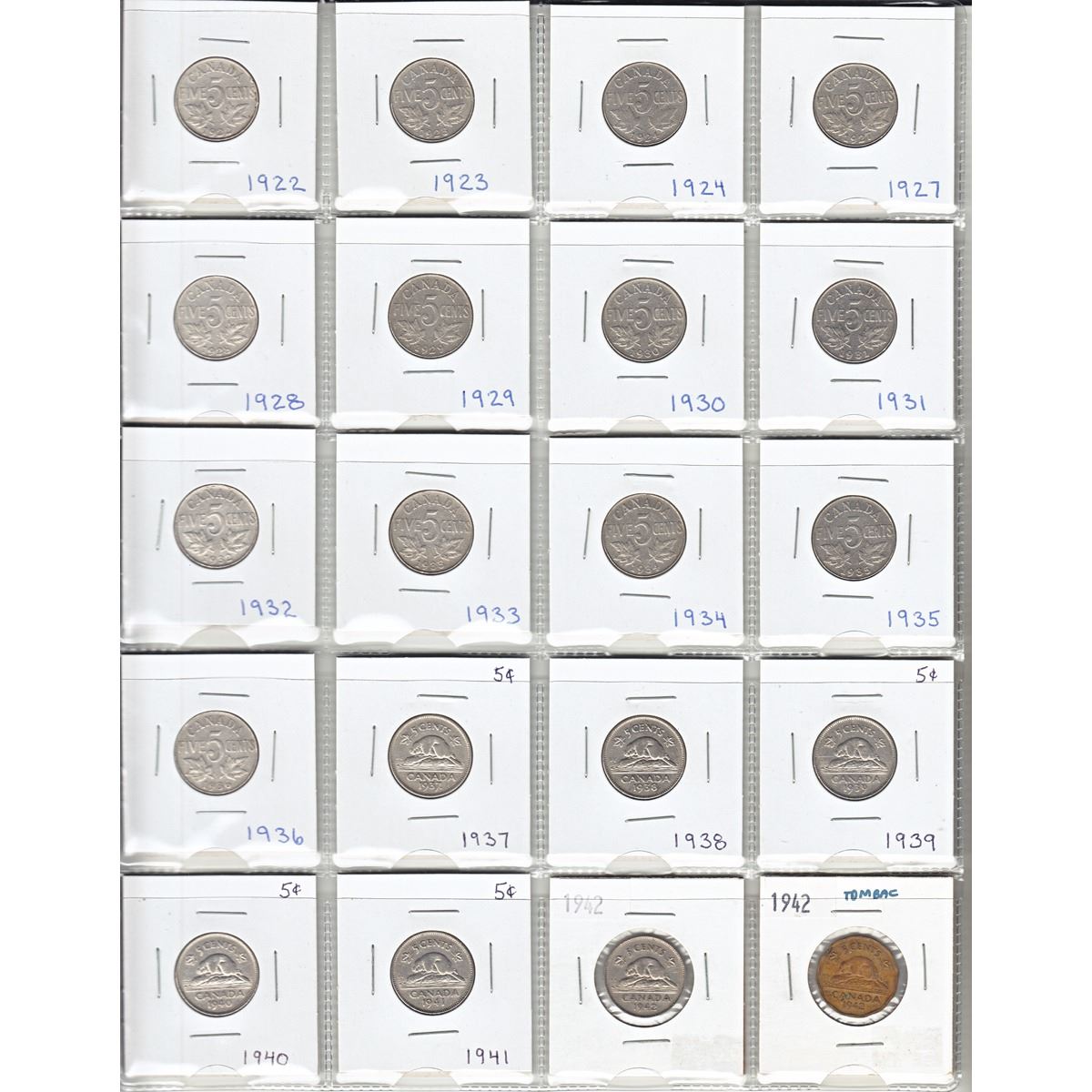 Estate Lot of Canada 5cts 1922 to 2013 (missing 1925, 1926). Most coins seem to be in average condition. 101 pieces. Sold as is, no returns. Buyers Premium will be added on all items as per our terms of sale. We accept Paypal, Credit Card, E-Transfer Payments, Cheque or Money Orders (there is an additional 3% fee for using Paypal or Credit Card). All invoices will be emailed immediately following the auction, please contact us if you would like to pay by credit card or receive a new revised lower total for mailing in payment or sending an e-transfer (3% discount). All Items Are Sold "AS IS", no returns