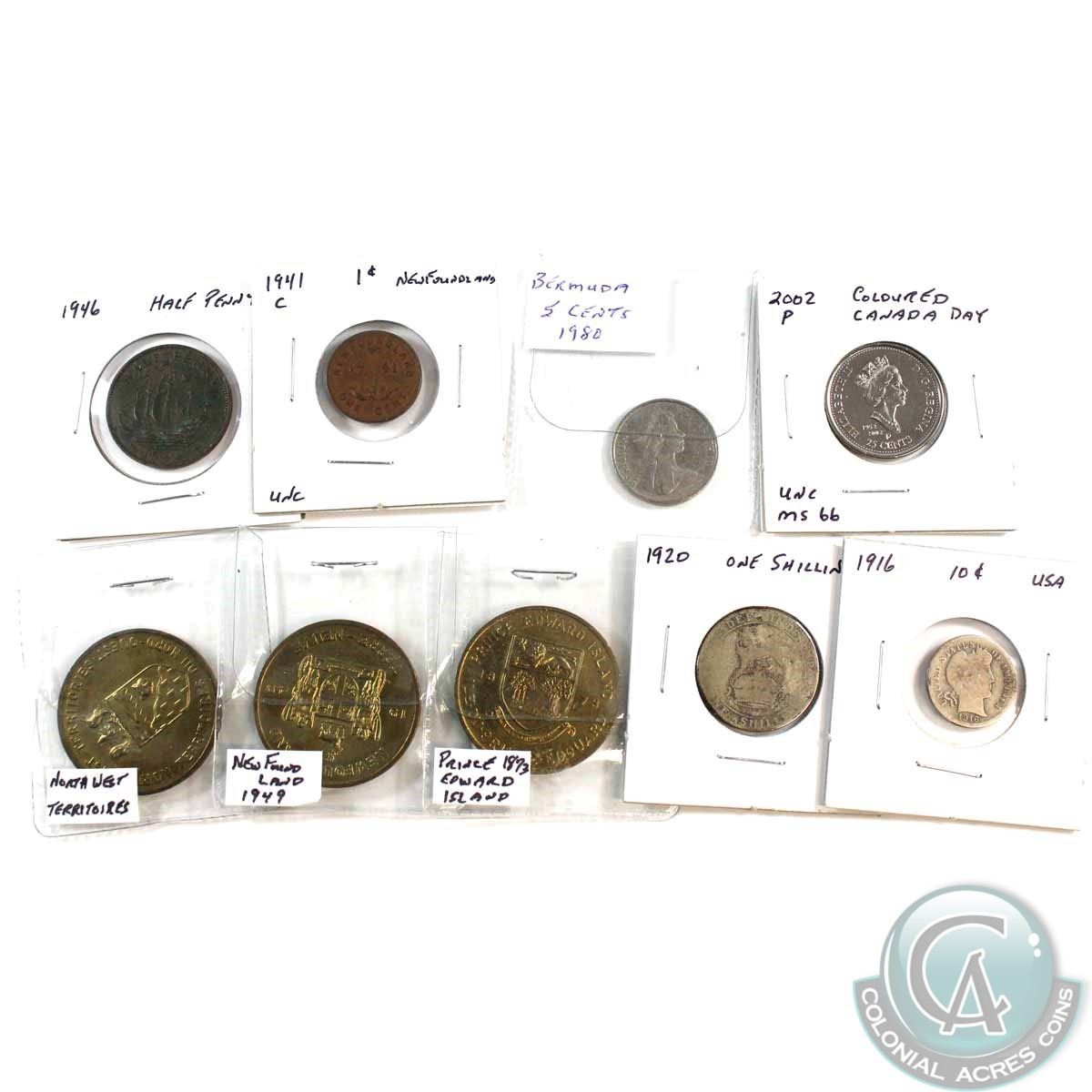 Estate Lot of Canada and World Coins and Tokens. 9pcs
