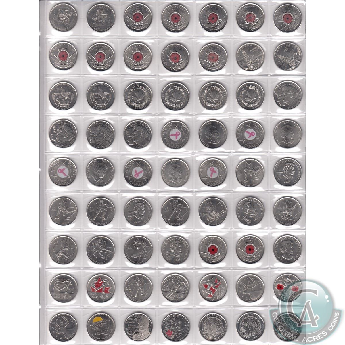 Estate Lot of Canadian Commemorative Mixed Coin Collection (some Coloured). You will receive 252 x 25-cent, 56x Dollars, and 15x $2. Total of 323 coins.