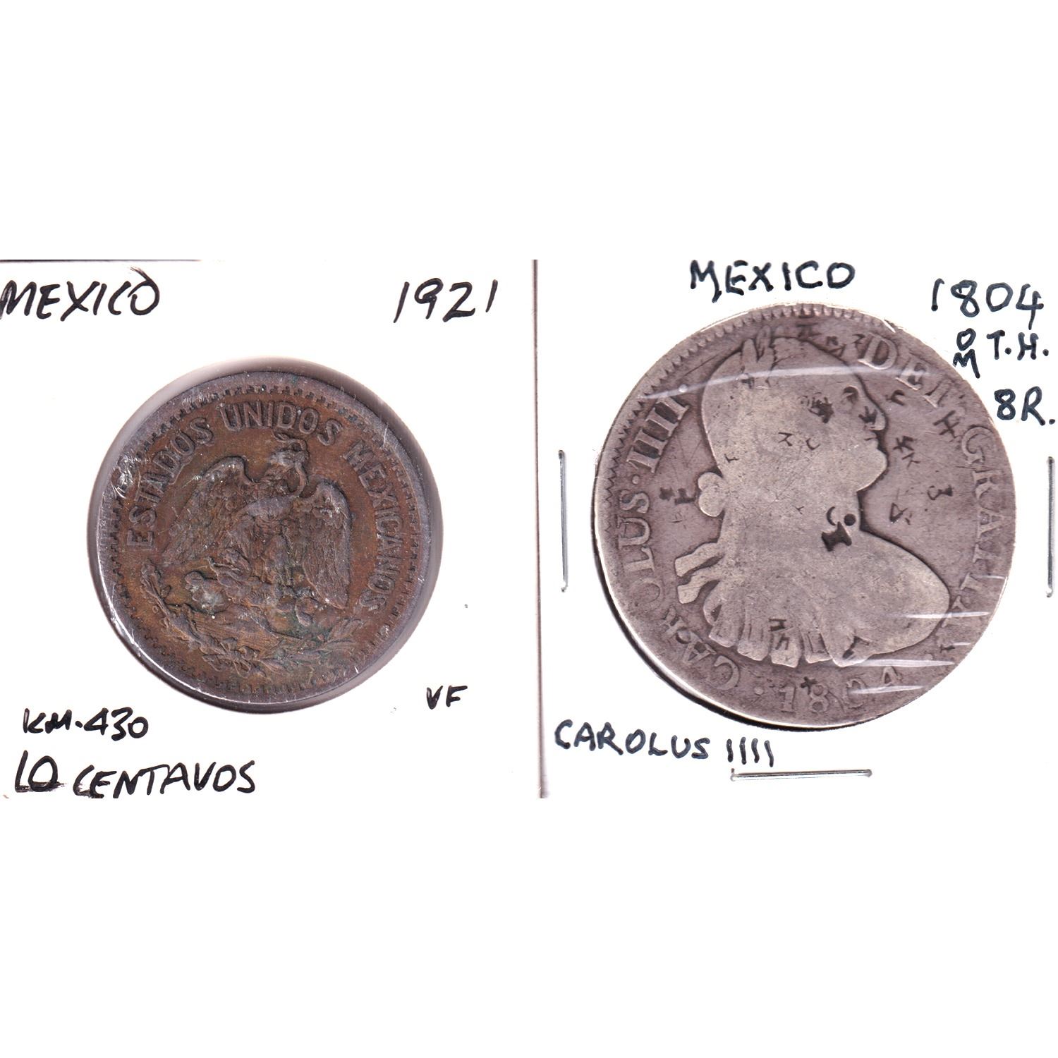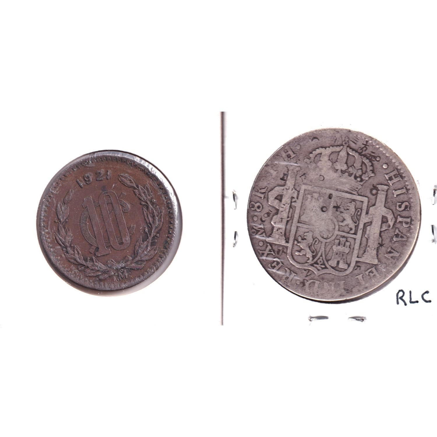 Estate Lot of Mexico 1804OMT.H. 8 Reales & 1921 10 Centavos. 2pcs