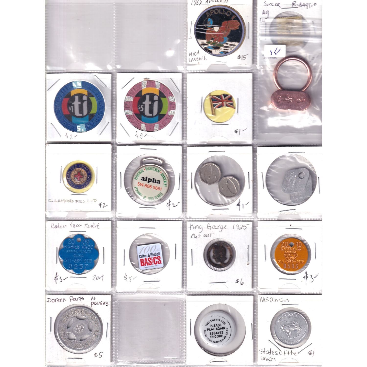 Estate Lot of Miscellaneous Tokens. 17pcs.