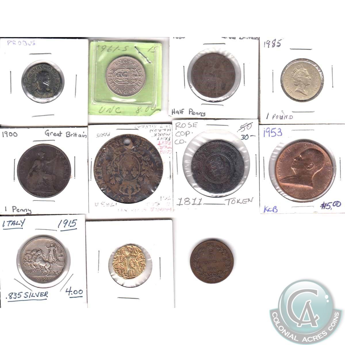 Estate Lot of Miscellaneous World Coins from Different Countries. Includes 2 Silver coins from Italy and France. 11pcs