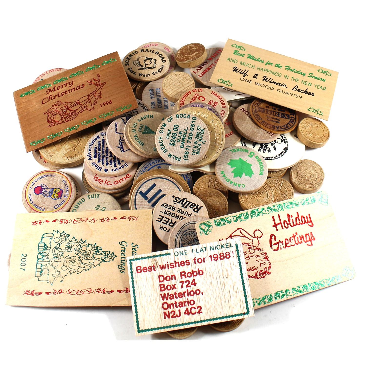 Estate Lot of Mixed Wooden Tokens. You will receive 84 tokens in this Collection. 84pcs.