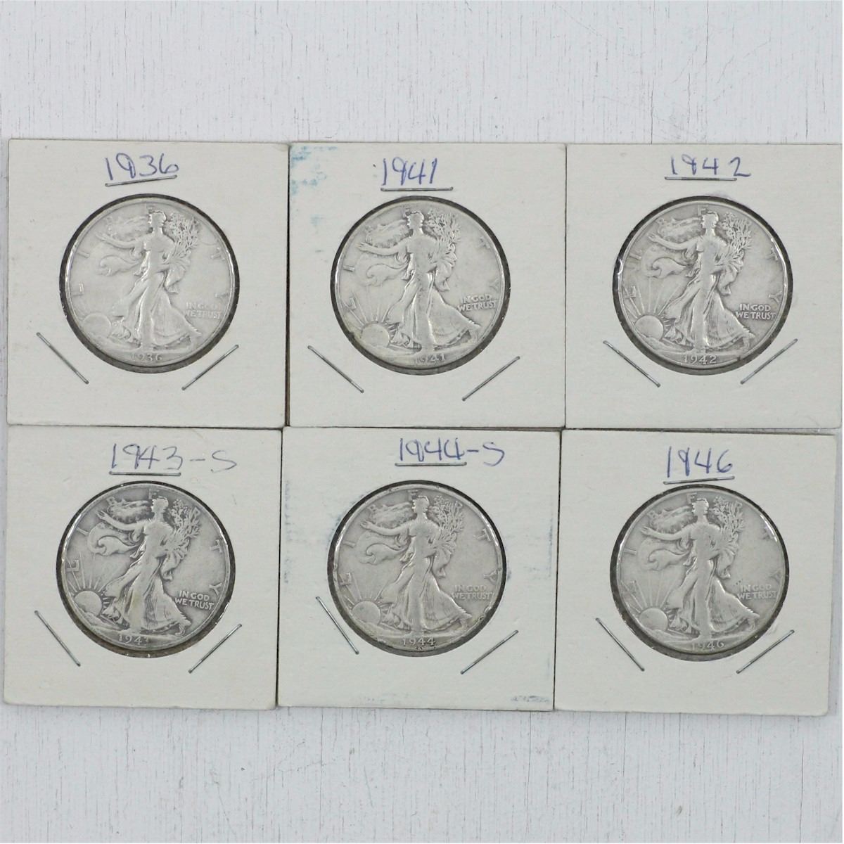 Estate Lot of USA Half Dollars dated 1943s, 1944S, 1946, 1941, 1936 and 1942. 6pcs
