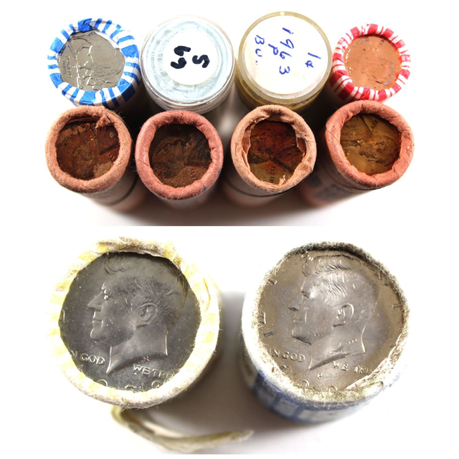 *Estate Lot of USA Rolls - 2x 1961 1-cent, 1962 1-cent, 1963 1-cent, 1964 1-cent, 1969 1-cent, 2010 1-cent, 2005 5-cent, 1978 50-cents & 2001 50-cent. 10 Rolls.