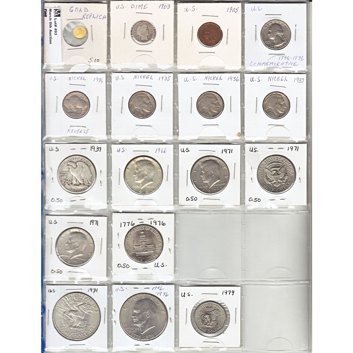 Estate Lot of USA coins in 2x2's. Oldest date 1903. Some Silver coins as well. 17pcs. Buyers Premium will be added on all items as per our terms of sale. We accept Paypal, Credit Card, E-Transfer Payments, Cheque or Money Orders (there is an additional 3% fee for using Paypal or Credit Card). All invoices will be emailed immediately following the auction, please contact us if you would like to pay by credit card or receive a new revised lower total for mailing in payment or sending an e-transfer (3% discount). All Items Are Sold "AS IS", no returns