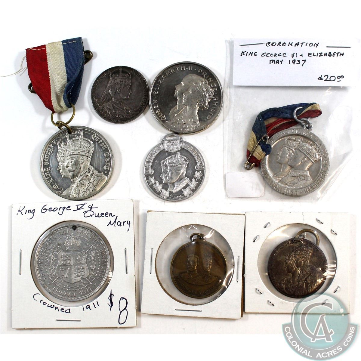 Estate Lot of Various Commemorative Royal Themed Tokens and Medallions. 2 of the Medals have original ribbons included. 8pcs