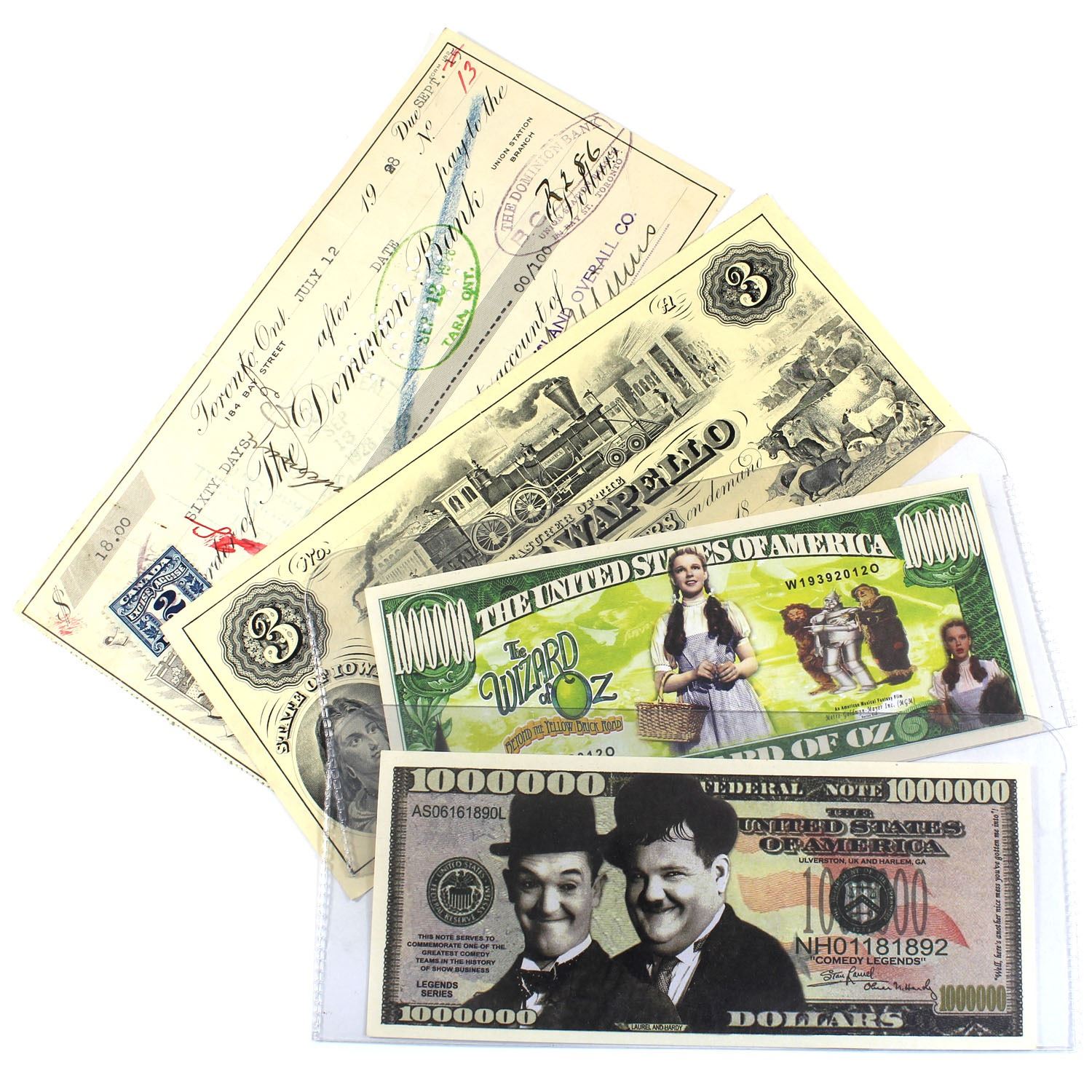 Estate Lot of Various Novelty Notes. You will receive 1 Million Dollars The Wizard of Oz, 1 Million Dollars Laurel & Hardy Comedy Duo, a reprint $3 City of Wapello State of Iowa note, a 1928 Toronto Dominion Bank Cheque for $18.00 & a 1894 State of Louisiana Lottery Ticket. 5pcs