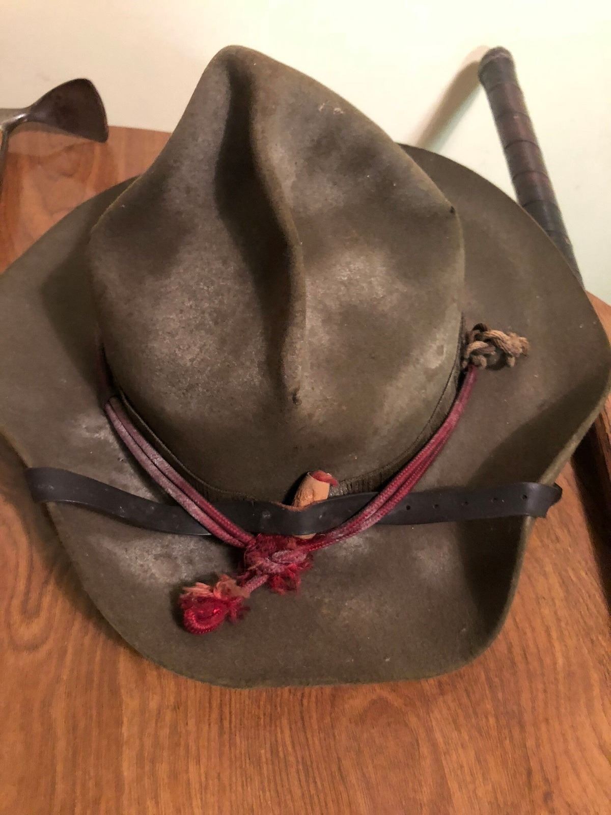 Estate lot includes golf club, Fur advertising match, safari hat, and walking stick. (RL)