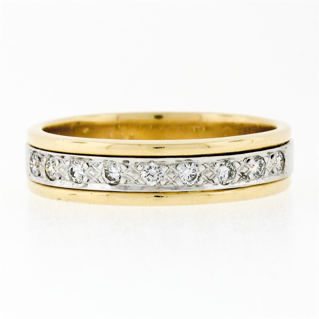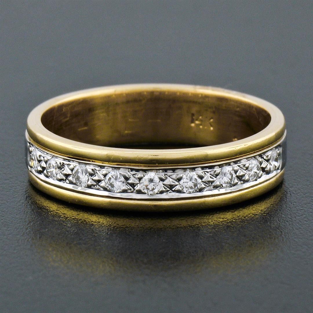 Estate Men's 14K Two Tone Gold 0.25 ctw Round Pave Set Diamond Wide Band Ring