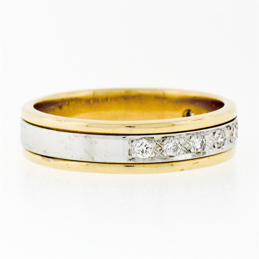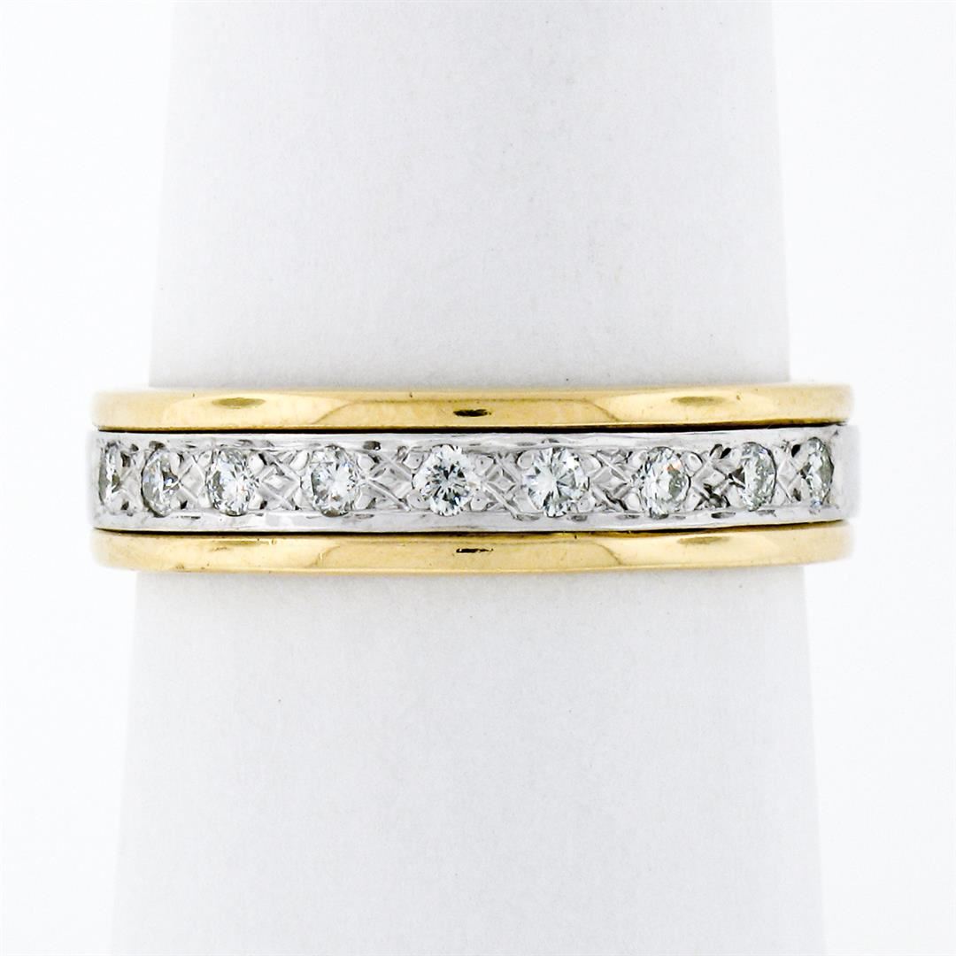Estate Men's 14K Two Tone Gold 0.25 ctw Round Pave Set Diamond Wide Band Ring
