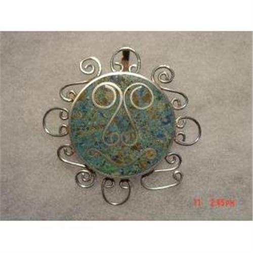 Here is a wonderful signed FS "the artist" Taxco Mexico 925 sterling brooch and pendant. There is a eagle mark 3. This lovely sun face brooch has many stones, my guess is lapis, turquoise inlay, Excellent condition. The surrounding sterling filigree is very attractive on this brooch and pendant. This measures 2inches tall by 1 3/4 inches wide