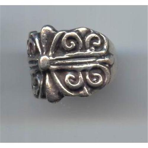 This neat sterling silver ring is quite ornate looking even without stones. It has a Renaissance look to it and measures 3/4 inches tall in the front, tapering down to 1/4 inch at the back. It is signed, 925 for sterling on the band.
