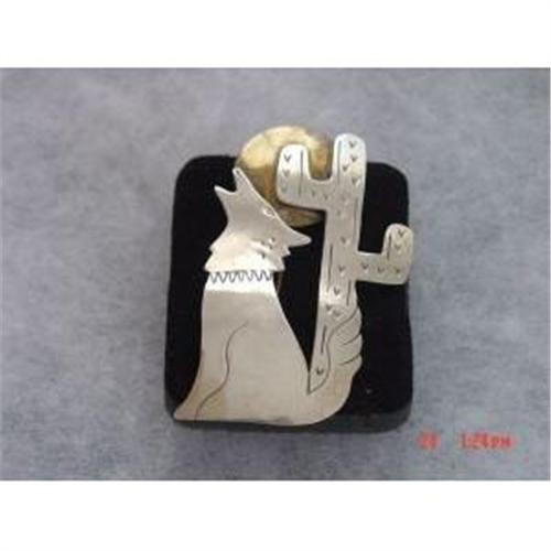 <tr><td>Title:Estate Mexican Sterling Signed Coyote Cactus Brooch</td></tr>