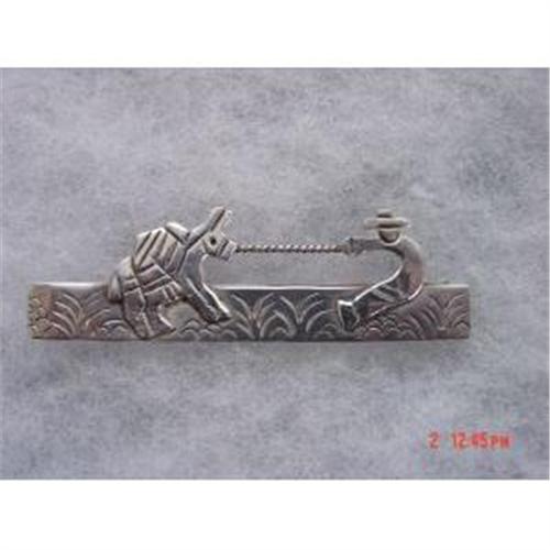 Here is a wonderful figural man and donkey mens tie clasp. It is signed HENCHO MEXICO ICUALR CRD i583 925 OCM It is in good condition. My guess is this is from the 1940s. Very cute vintage Mexican sterling tie clasp