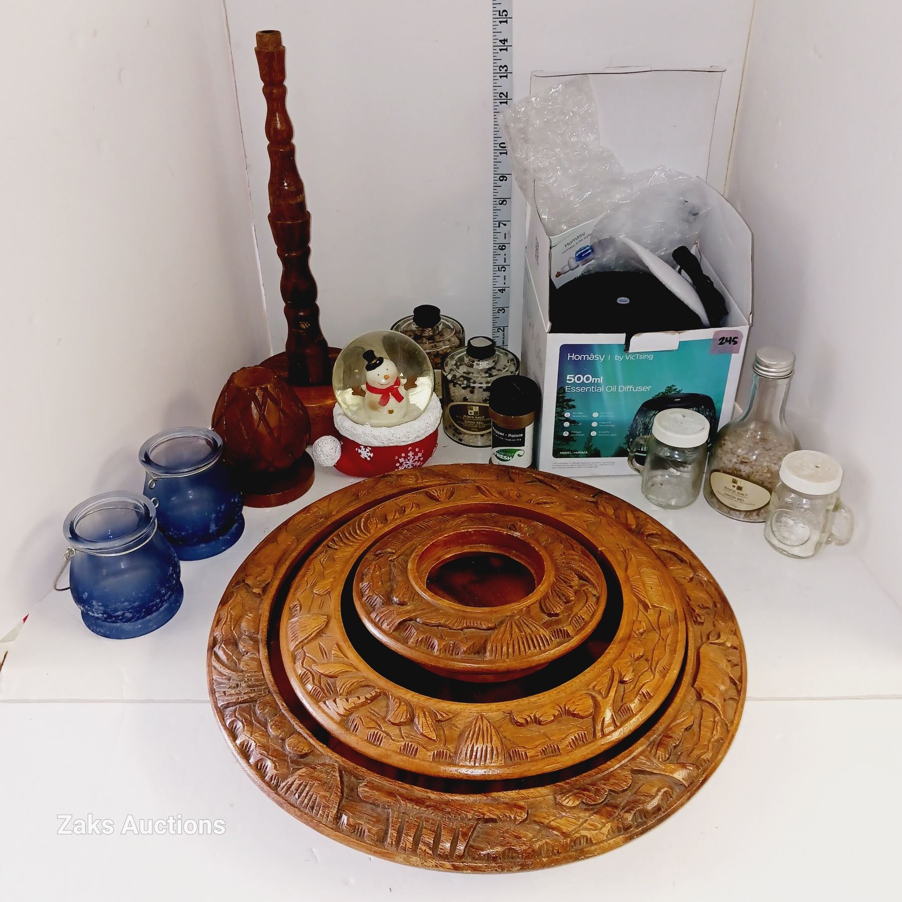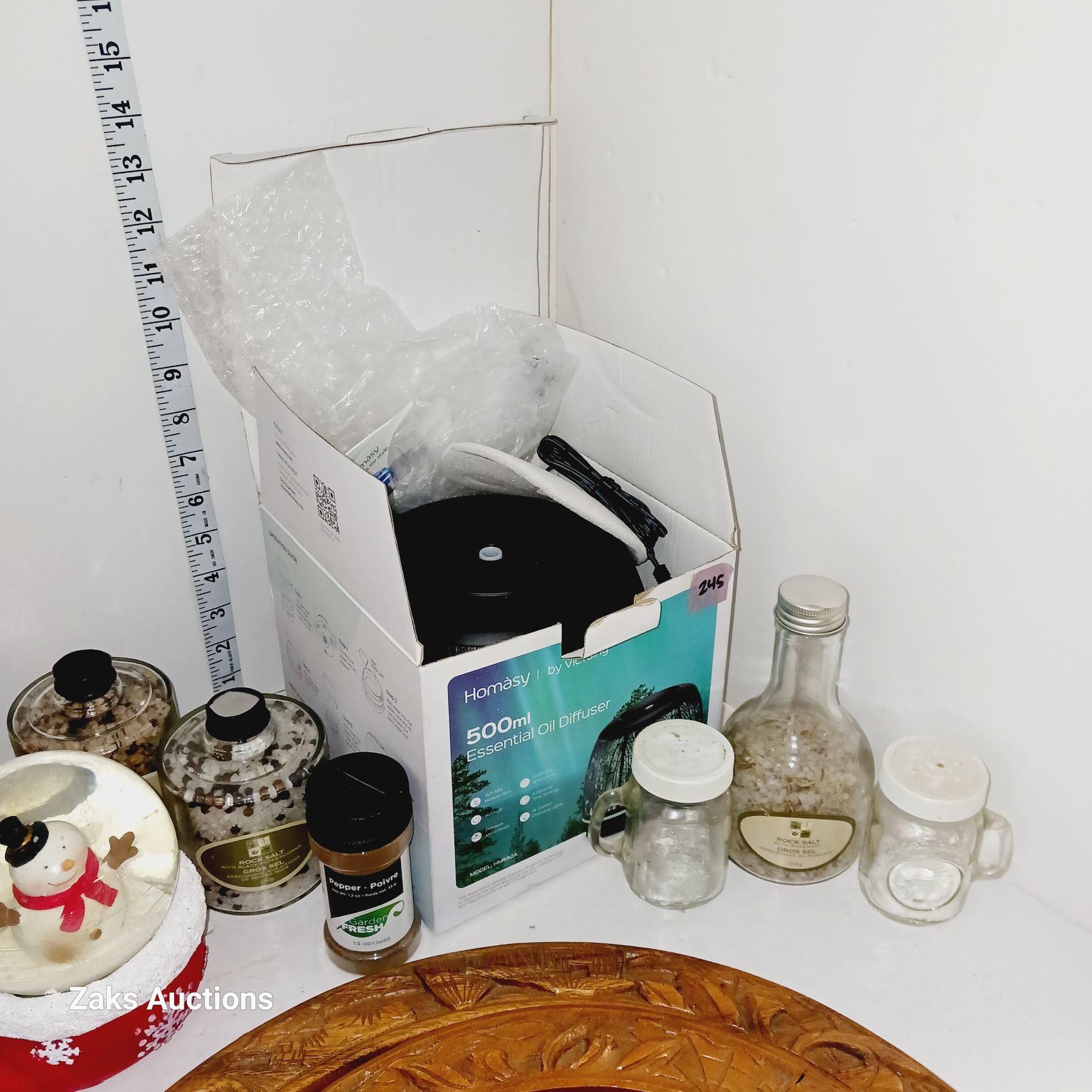 Estate Mixed Box - essential oil diffuser, wooden bowls and deco, vintage snow globe, salt & pepper shakers, 3 containers salt