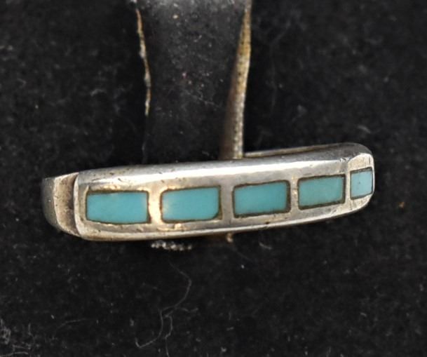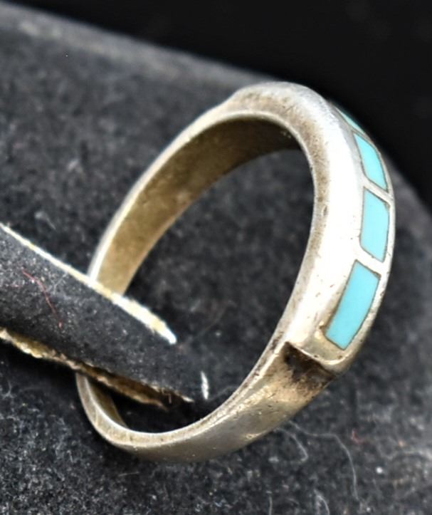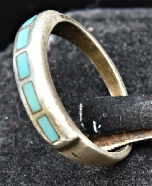 Estate Native American Navajo Sterling Turquoise Ring, Size 10.25, measures 1/8''W,
