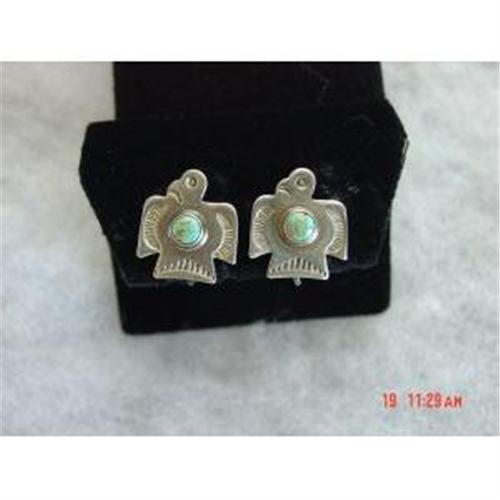 <tr><td>Title:Estate Old Pawn Thunderbird Turquoise Earrings</td></tr>