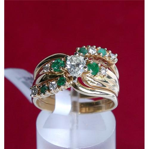 Many of you know me from my five years of national jewelry television shows, Estate Jewelry with Sam and Lisa and Jewelry and Collectables with Lisa. Now I am honored to present these beautiful antique and estate finds to you through Go Antiques. Here is a beautiful emerald and diamond wedding set. There is a very white .25 pear cut diamond solitaire accented with a total of 6 round emeralds and 6 round diamonds yielding approx .45ctw of gems in this ring set. The diamonds are D-E in color and the clarity is VS1. The vibrant green genuine emeralds are all matched and mated. This is such an exquisite 14kt yellow gold wedding set. The ring set is size 8.25 and weighs 7.1 grams. If you bid on this piece and do not win it, please visit my online store by clicking ?view this dealers other items? to see if it is still available for direct sale or offers. Need Ring Sizing? Ask me about wholesale sizing prices. Personal shopping requests can be sent to ?email dealer?. Help make adoption a reality! Add a $4.00 ?Orphans R Gems? ?Support Adoption? blue silicone bracelet to your order or visit my non-profit Orphans R Gems website.
