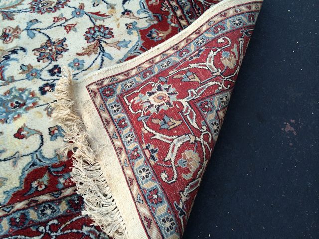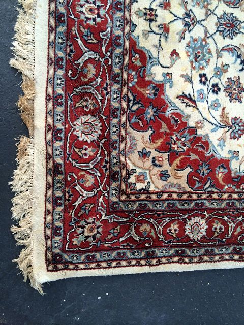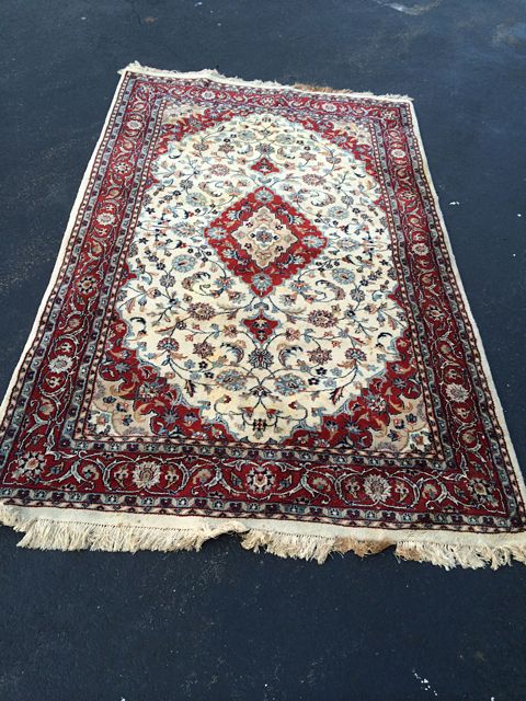 Beautiful Persian Style Hand Woven Rug with deep rich reds and ivory colors. From the estate of a Doctor's home, kept in very nice condition, originally paid well over what is estimated for this rug.