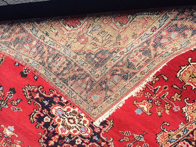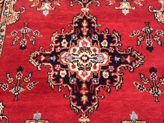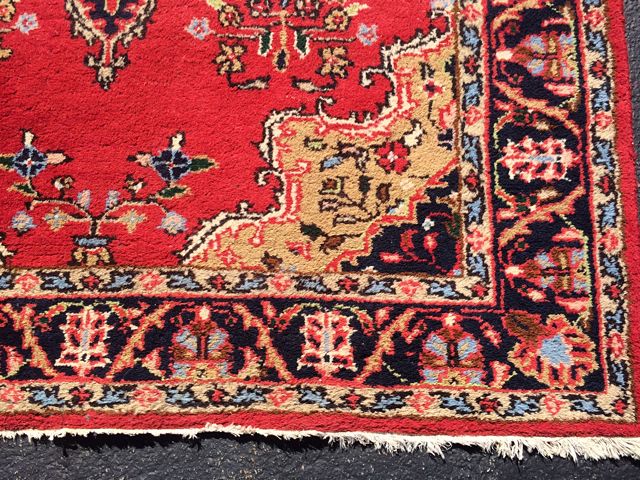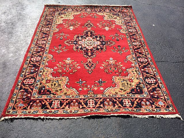 Beautiful Persian Style Hand Woven Rug with deep bright red and blue and gold medalon, fabulous colors. From the estate of a Doctor's home, kept in very nice condition, originally paid well over what is estimated for this rug.