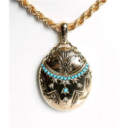 <tr><td>Title:Estate PersianTurquoise Pearl Gold Locket 14kt</td></tr>