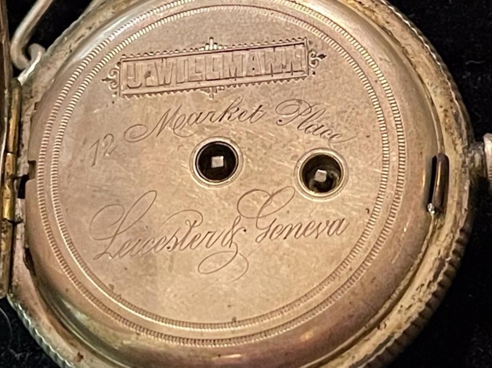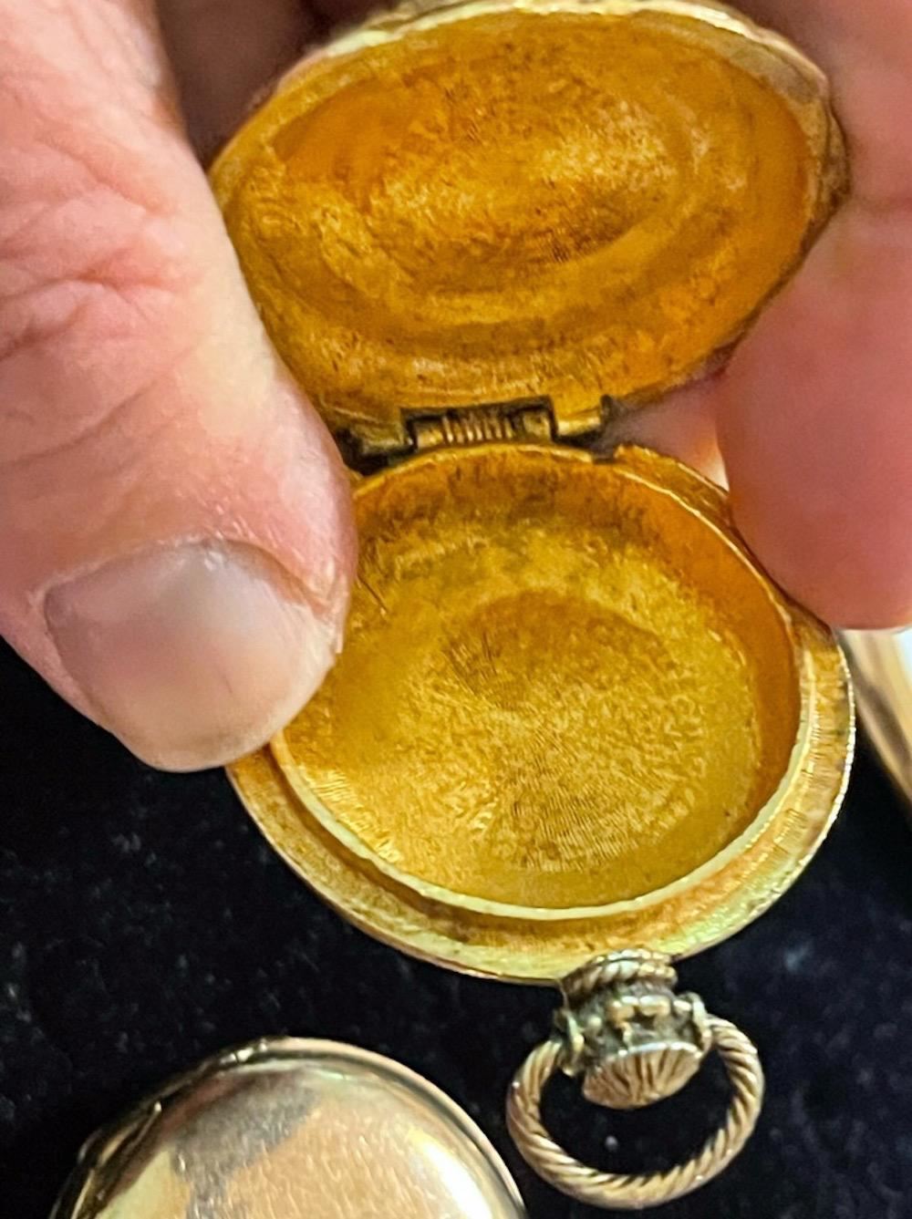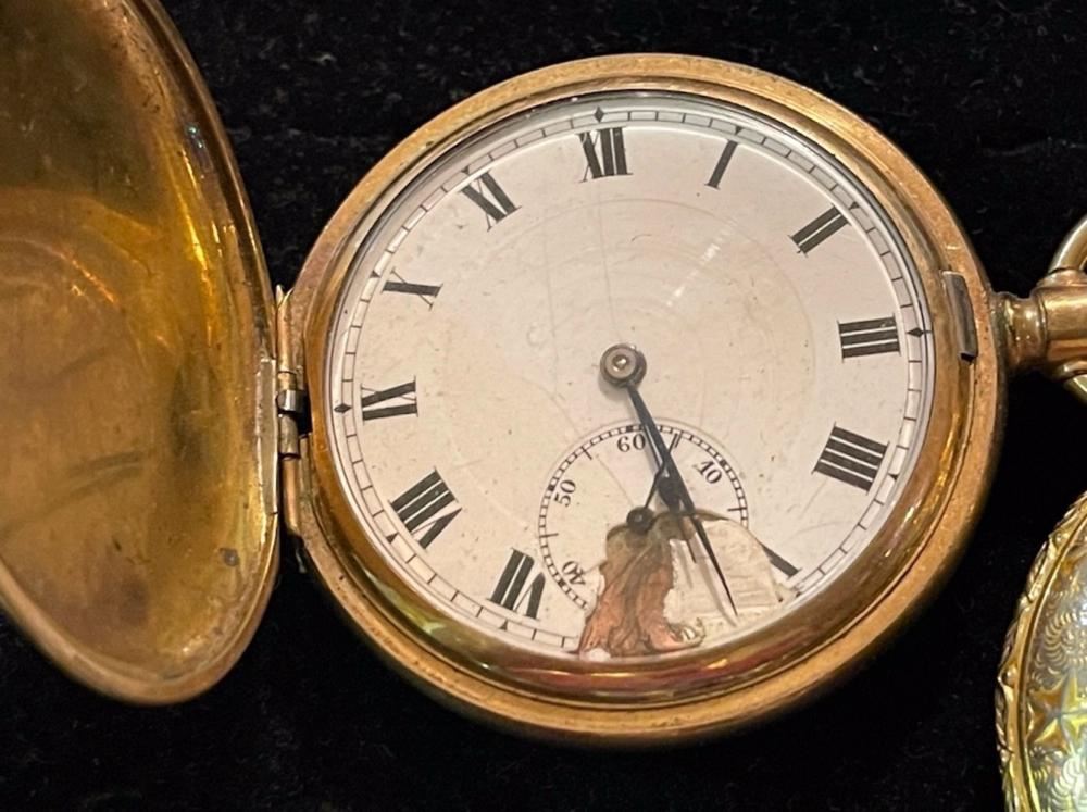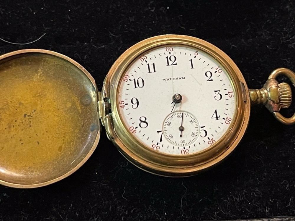 Estate pocket watch collection including Howard, Boston, MA., silver watch with silver watch chain and pill box, looks to be ladies watch, Waltham, etc.