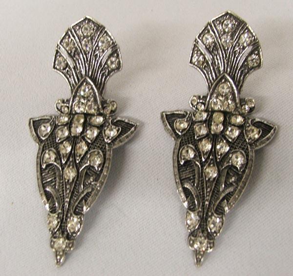 Estate Rhinestone Clip On Earrings, measures approx. 3'' long. SHI $15.