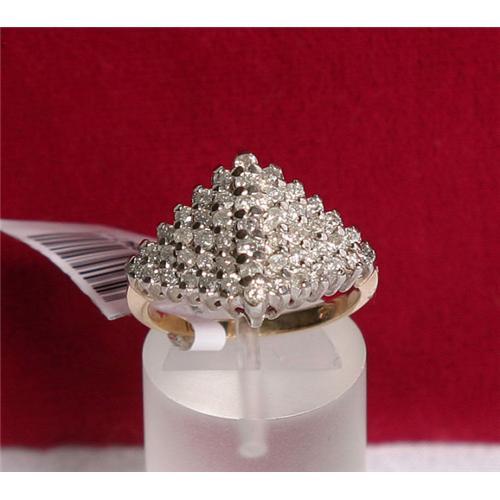 Many of you know me from my five years of national jewelry television shows, Estate Jewelry with Sam and Lisa and Jewelry and Collectables with Lisa. Now I am honored to present these beautiful antique and estate finds to you through Go Antiques. Here is a beautiful diamond ring with 49 round 1pt diamonds. The diamonds clustered together give the appearance of two large trillion diamonds, J, SI1-SI2, 10kt gold. The ring is currently a size 7.5 and weighs 4.6 grams. If you bid on this piece and do not win it, please visit my online store by clicking ?view this dealers other items? to see if it is still available for direct sale or offers. Need Ring Sizing? Ask me about wholesale sizing prices. Personal shopping requests can be sent to ?email dealer?. Help make adoption a reality! Add a $4.00 ?Orphans R Gems? ?Support Adoption? blue silicone bracelet to your order or visit my non-profit Orphans R Gems website.