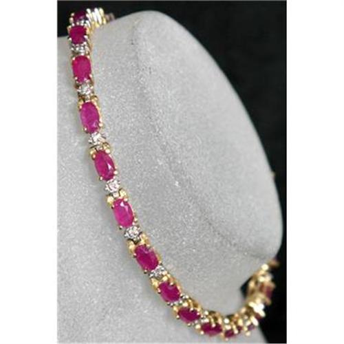 <tr><td>Title:Estate Ruby Diamond Yellow Gold Tennis Bracelet</td></tr>