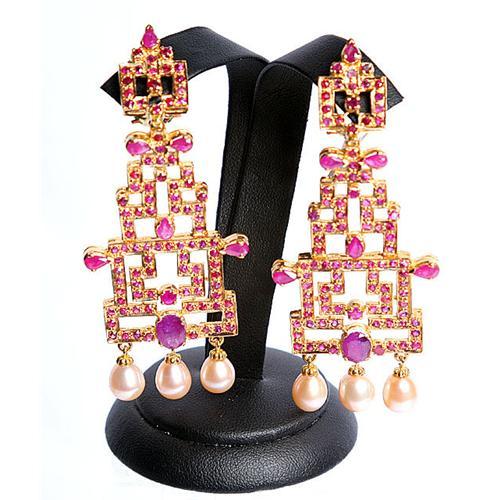 <tr><td>Title:Estate Ruby Pearl 22K Yellow Gold Earrings</td></tr>