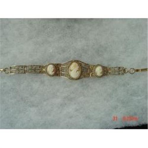 <tr><td>Title:Estate Shell  CAMEO FILIGREE Bracelet</td></tr>
