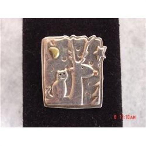 <tr><td>Title:Estate Signed F.F Sterling Brooch Deer Cat Moon</td></tr>