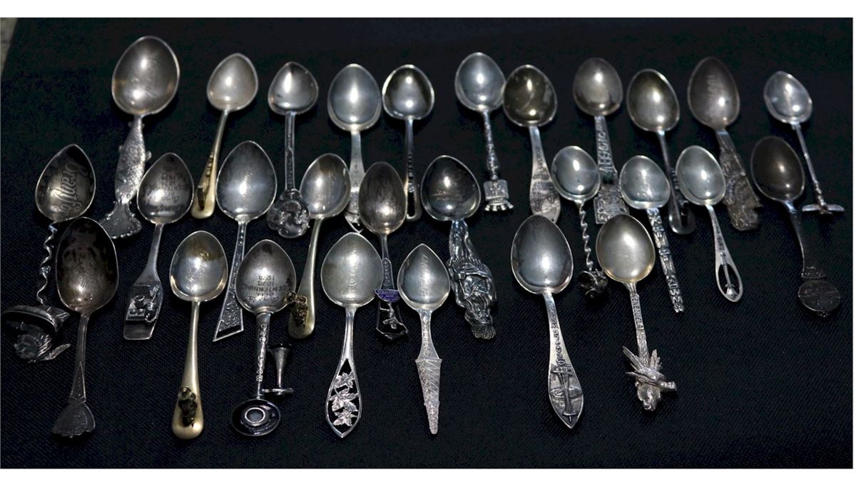 Estate Silver- Group Lot of 28 vintage collector Spoons, All spoons feature a 3D design on the top or throughout the stem of the spoon. Total Weight 295 grams.