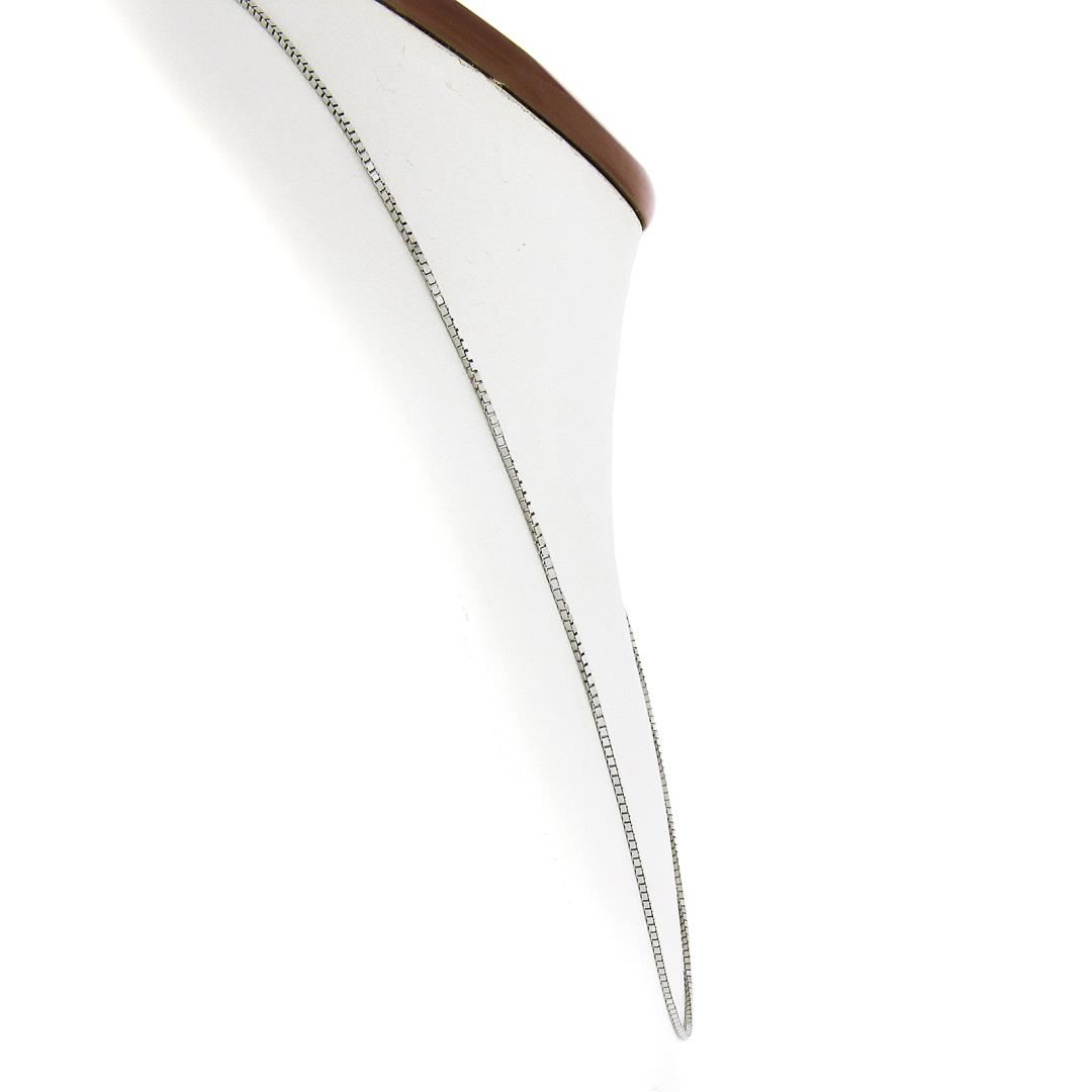 A solid 14k white gold box link chain necklace. It weighs a total of 4.76 grams, measures 1.3mm wide, and measures 20 inches in length.