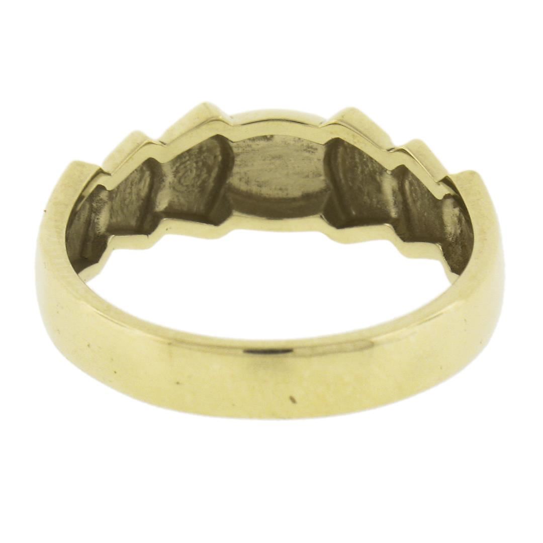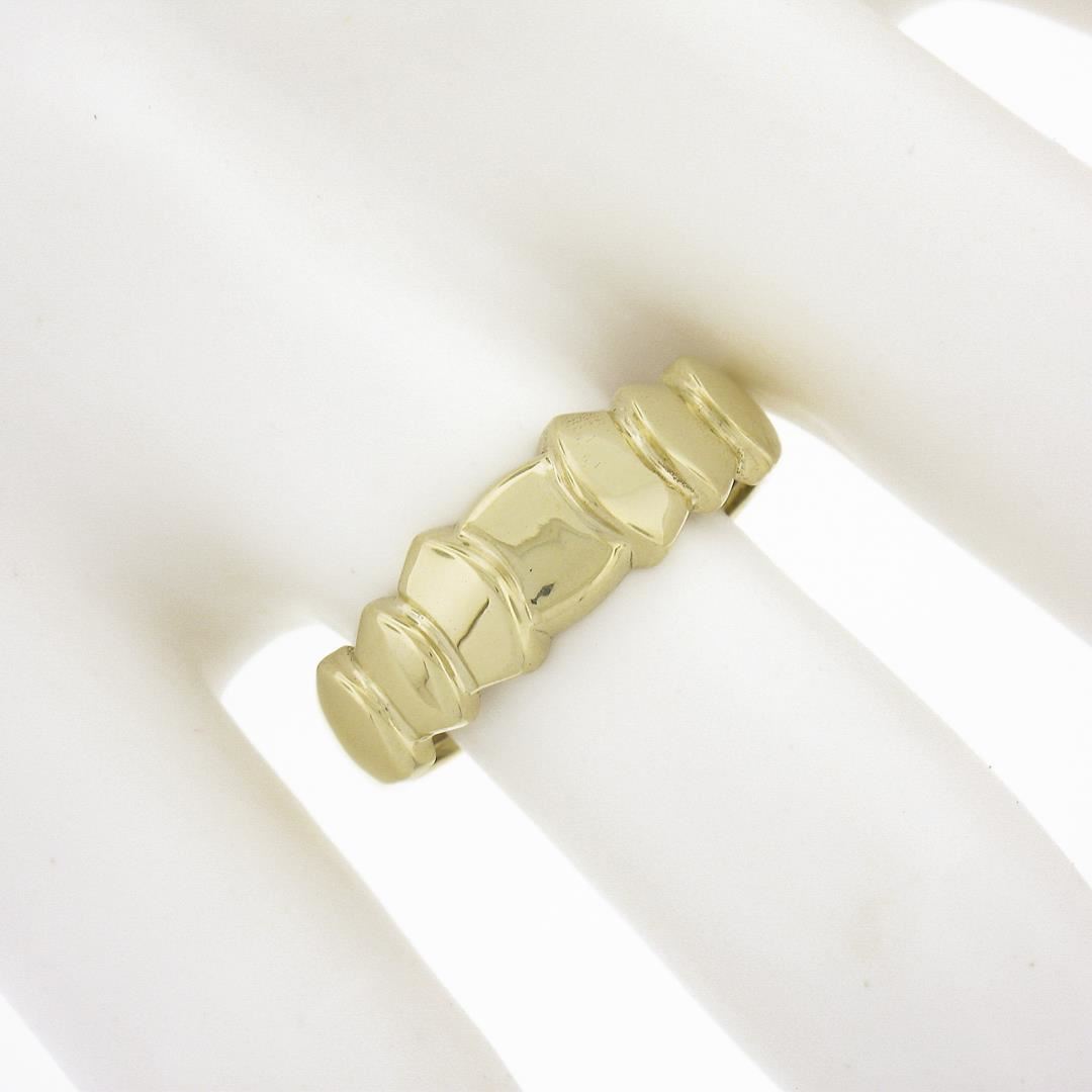 A solid 14k yellow gold pyramid band ring. The ring is size 8.0, weighs a total of 3.60 grams, and measures 6.8mm wide.