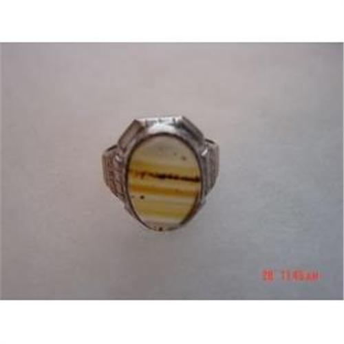 <tr><td>Title:Estate Sterling Agate Ring Designer Uncas or Sorrento</td></tr>